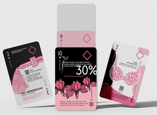 Creating a typographic specimen card deck to address the sensitive topic of breast cancer required a delicate balance of empathy and empowerment. The challenge was to present this information in a way that was both informative and comforting, using typography and design to guide users through the journey of diagnosis and treatment. Every element, from the typeface to the visual motifs, needed to evoke feelings of clarity, hope, and resilience.